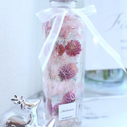 ガラス瓶の中にプリザーブドフラワーやドライフラワーなどの乾燥処理をした植物を入れ、ハーバリウム専用の特殊なオイルに浸して保存したものです。